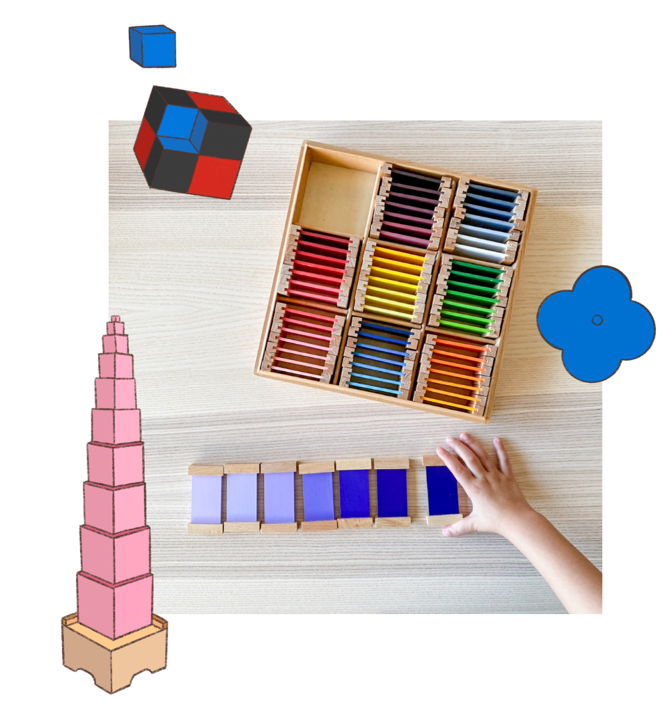 These are often the materials people picture when they think of Montessori: the iconic Pink Tower, the Brown Stair, the Red Rods, colour tablets, sound cylinders, and other beautiful materials designed to isolate and explore one sensory quality at a time.