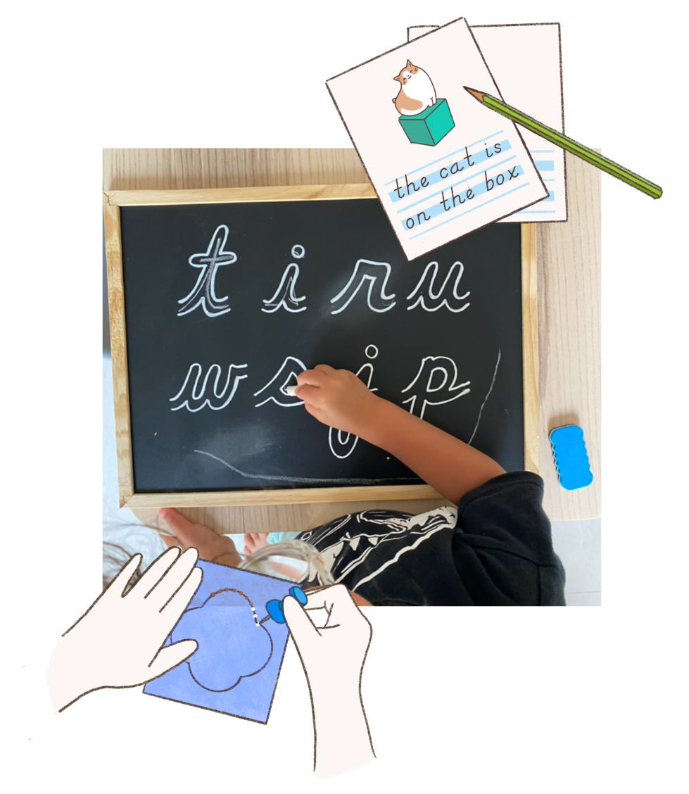 The Montessori language curriculum supports children as they move from rich spoken language to reading and writing. Through carefully sequenced materials, children build vocabulary, develop phonetic awareness, and gradually learn to express their ideas through written language.